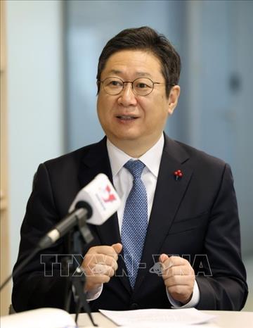 Bộ trưởng Văn hóa, Thể thao và Du lịch Hàn Quốc Hwang Hee trả lời phỏng vấn của phóng viên TTXVN. Ảnh: Khánh Vân/TTXVN |