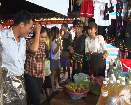 | Ðông đảo du khách thăm quan các sản phẩm từ quế tại các gian hàng trưng bày. |