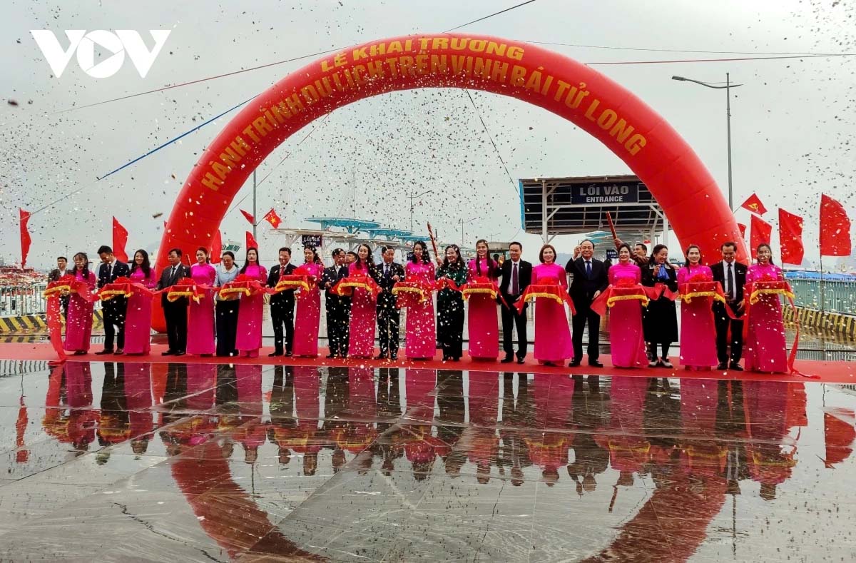 ác đại biểu cắt băng khai trương các hành trình tham quan vịnh Bái Tử Long ngày 29/03. Ảnh: VOV |