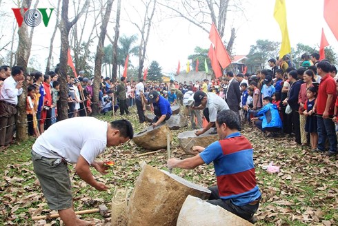 Đây là dịp để người dân vui chơi đầu xuân, học hỏi kinh nghiệm và rèn luyện tay nghề, khởi đầu cho một năm lao động bằng nghề chẻ đá. Hội thi với 8 đội tham dự, thu hút hàng trăm người dân đến chung vui cổ vũ. Trong 1 giờ đồng hồ, hai thành viên giỏi tay nghề của mỗi đội sẽ chẻ một tảng đá tự nhiên có kích thước tương đương nhau. Các đội phải chẻ viên đá bằng hình thức thủ công với ve, đục, búa… Đội nào chẻ đá ra được nhiều viên đá vuông thành sắc cạnh, hình thức đẹp, cân đối, đủ hai mặt thì thắng cuộc.