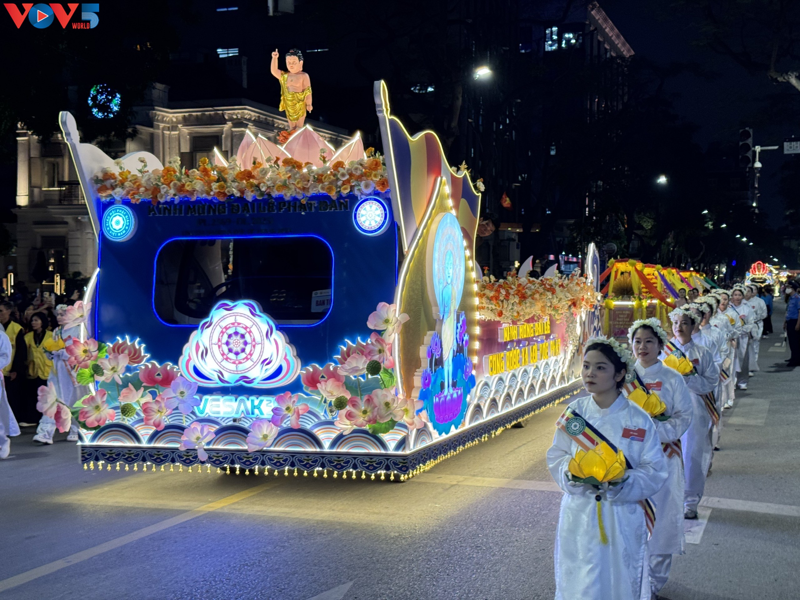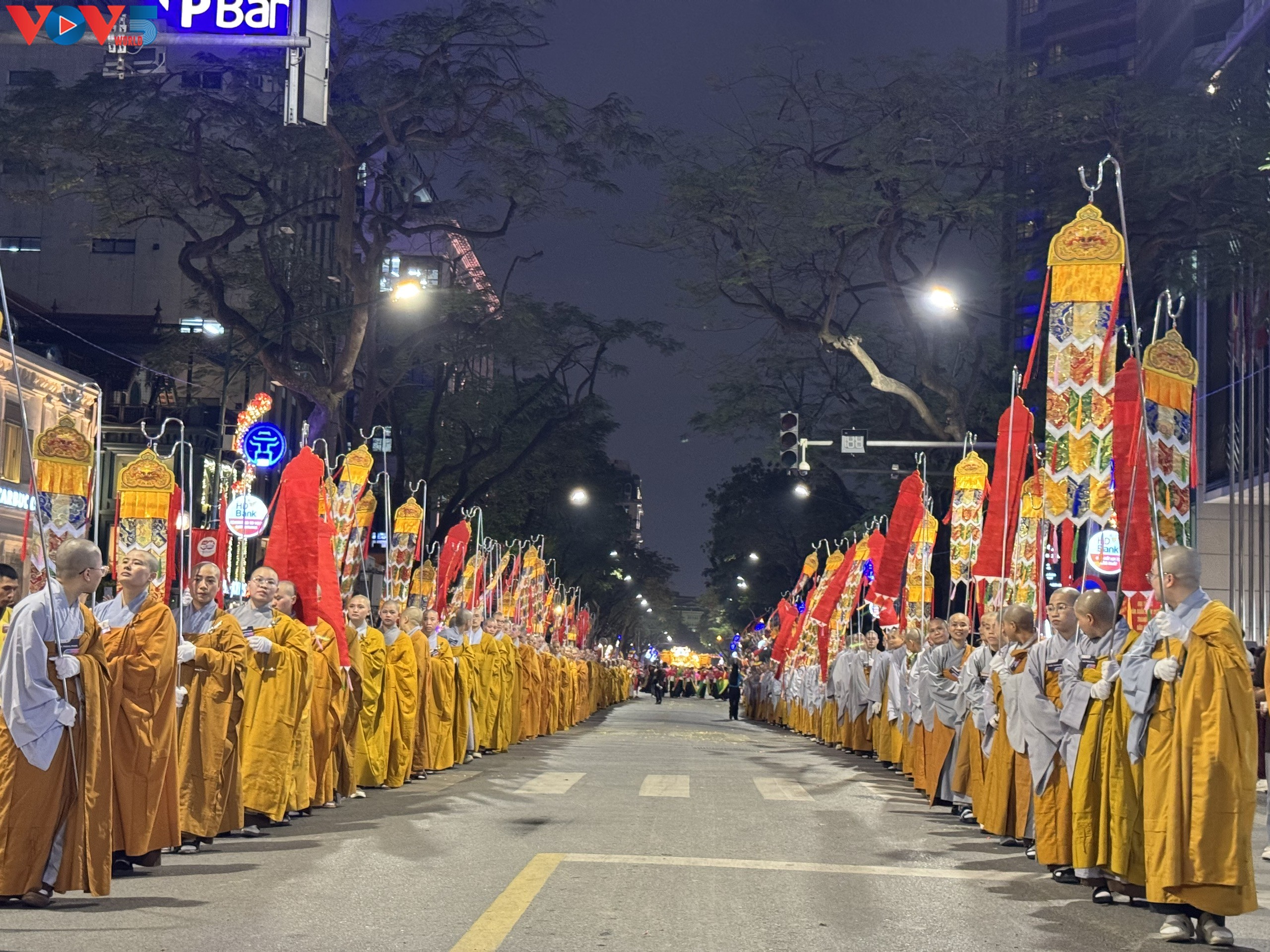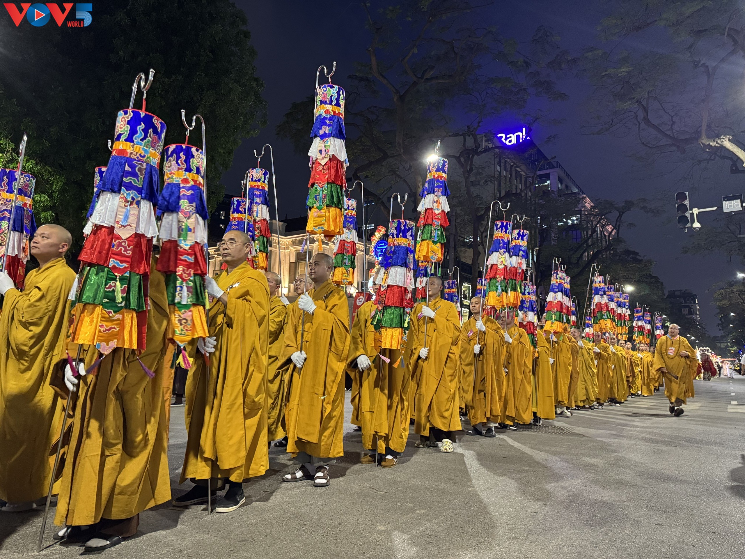 Lúc 19:00 ngày 13/5, từ chùa Quán Sứ, đoàn rước di chuyển qua nhiều tuyến phố trung tâm và đặc biệt là thực hiện nghi lễ đi bộ quanh Hồ Hoàn Kiếm – biểu tượng của Thủ đô ngàn năm văn hiến– trong tiếng chuông trống bát nhã và lời niệm Phật đồng thanh của hàng ngàn tăng ni, phật tử và người dân. Lễ rước thể hiện tinh thần hòa bình, từ bi của đức Phật.