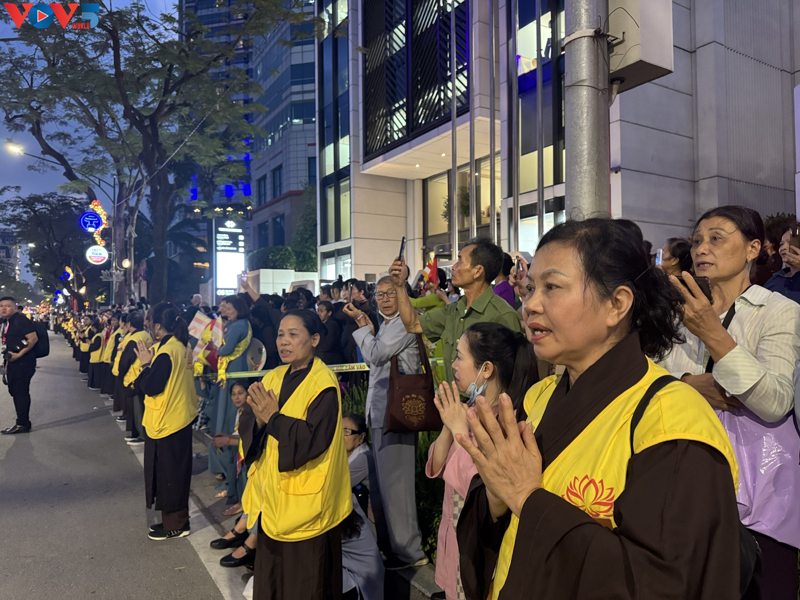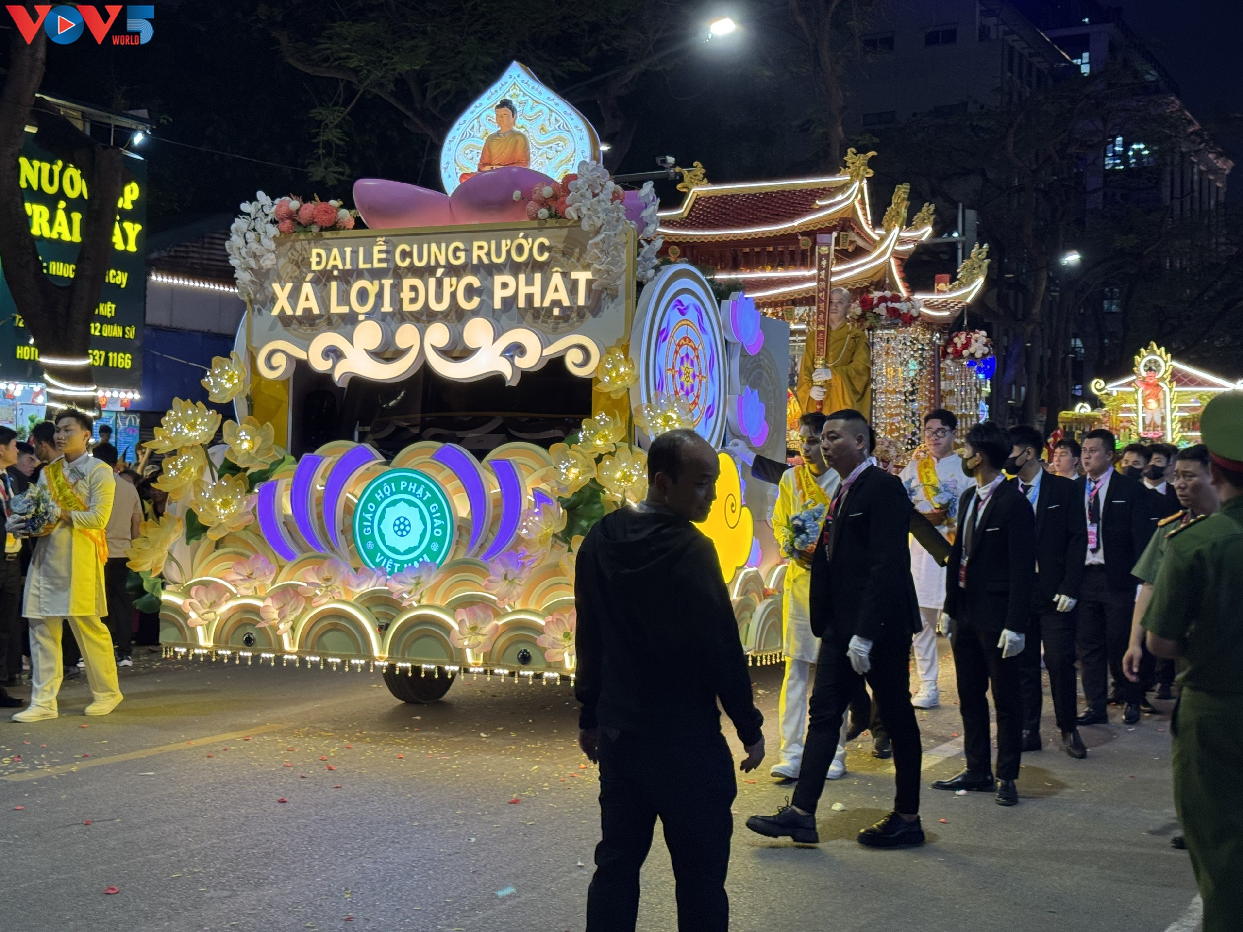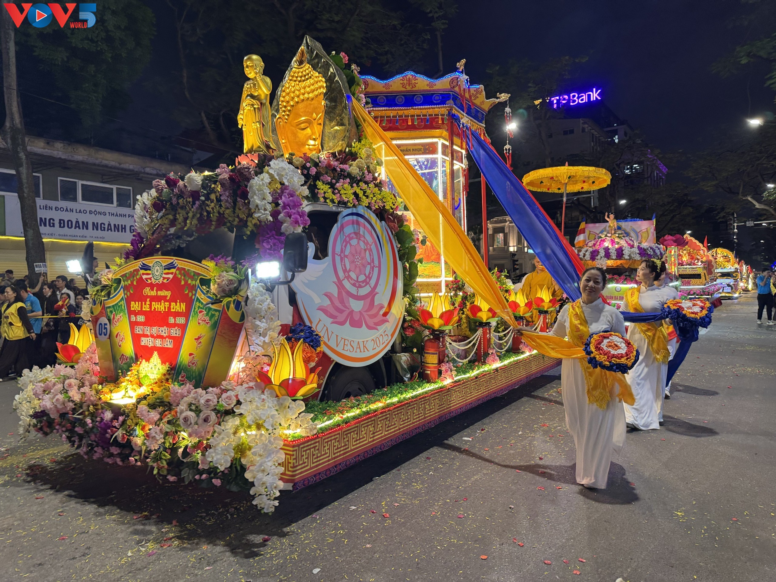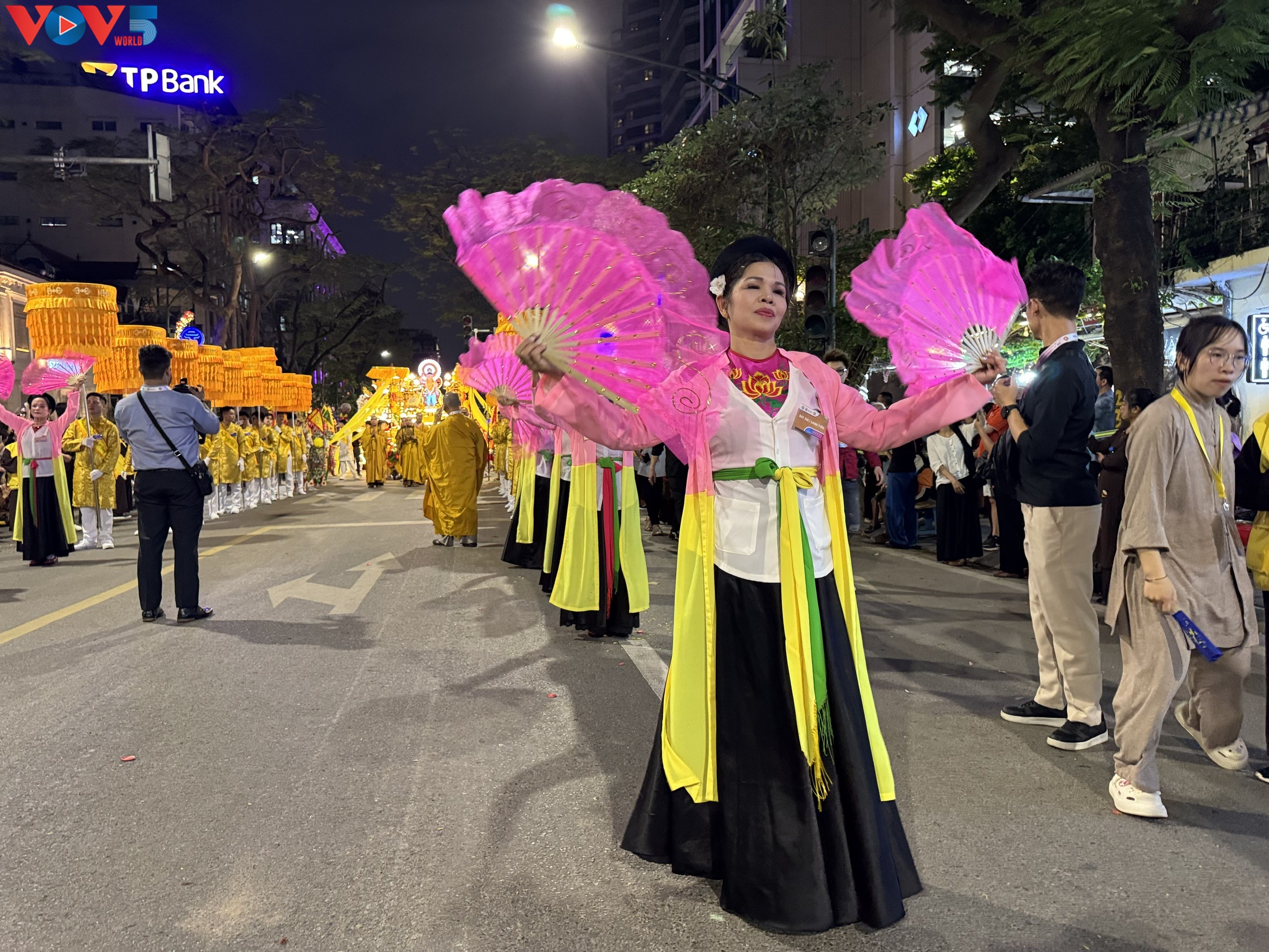 Lúc 19:00 ngày 13/5, từ chùa Quán Sứ, đoàn rước di chuyển qua nhiều tuyến phố trung tâm và đặc biệt là thực hiện nghi lễ đi bộ quanh Hồ Hoàn Kiếm – biểu tượng của Thủ đô ngàn năm văn hiến– trong tiếng chuông trống bát nhã và lời niệm Phật đồng thanh của hàng ngàn tăng ni, phật tử và người dân. Lễ rước thể hiện tinh thần hòa bình, từ bi của đức Phật.