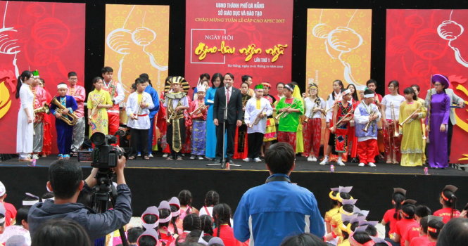 | Học sinh Đà Nẵng tham dự Ngày hội giao lưu ngôn ngữ sáng 21-1 - Ảnh: Đoàn Cường |
