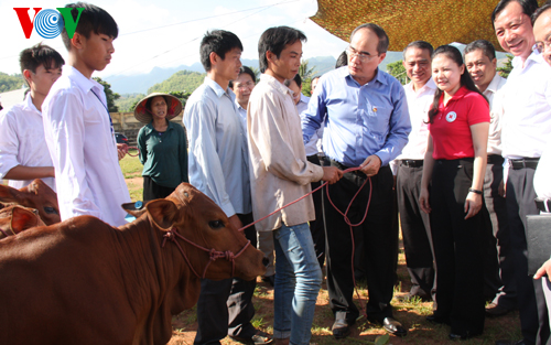Tại buổi lễ, Chủ tịch Ủy ban mặt trận Tổ quốc VN Nguyễn Thiện Nhân đã trao trực tiếp 22 con bò trong tổng số 100 con bò sinh sản, trị giá 1 tỷ đồng cho các hộ nghèo của huyện Yên Châu. Số bò này do cán bộ, viên chức ngành Ngân hàng nông nghiệp và phát triển nông thôn Việt Nam đóng góp để giúp đỡ hộ nghèo theo chương trình của Trung ương MTTQ Việt Nam phối hợp với Trung ương Hội chữ thập đỏ phát động. Chương trình này sẽ tạo điều kiện giúp hàng trăm hộ nghèo của tỉnh Sơn La phát triển kinh tế, xóa đói giảm nghèo.