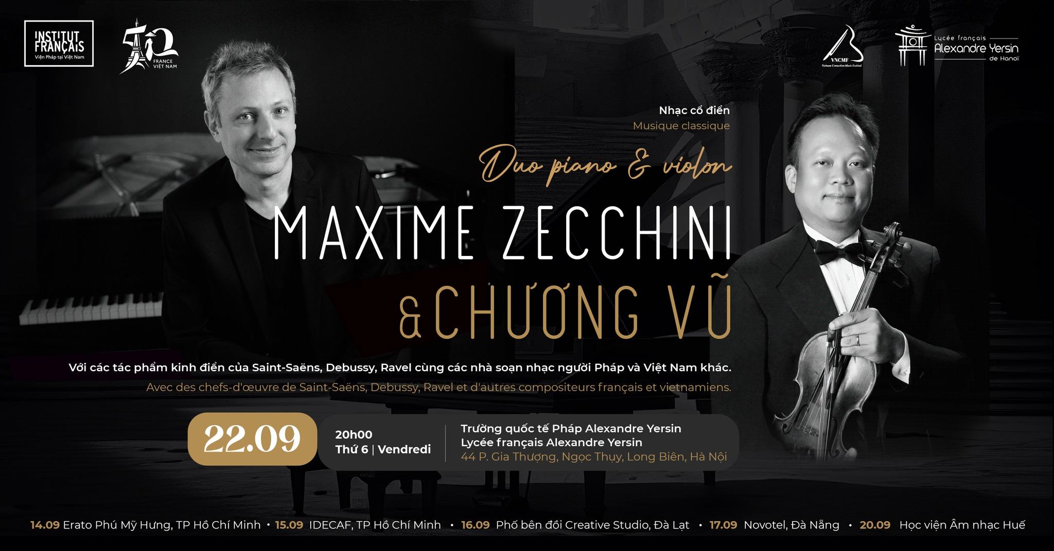 Những đêm nhạc tại nhiều thành phố hứa hẹn sẽ mang đến cho công chúng một trải nghiệm độc đáo qua các tác phẩm lần đầu được biểu diễn trên thế giới và tại Việt Nam với lối chơi đầy cảm xúc và kỹ thuật bậc thầy của những người nghệ sĩ đến từ hai nền văn hóa Pháp - Việt: Maxime Zecchini (piano) và Chương Vũ (violon).