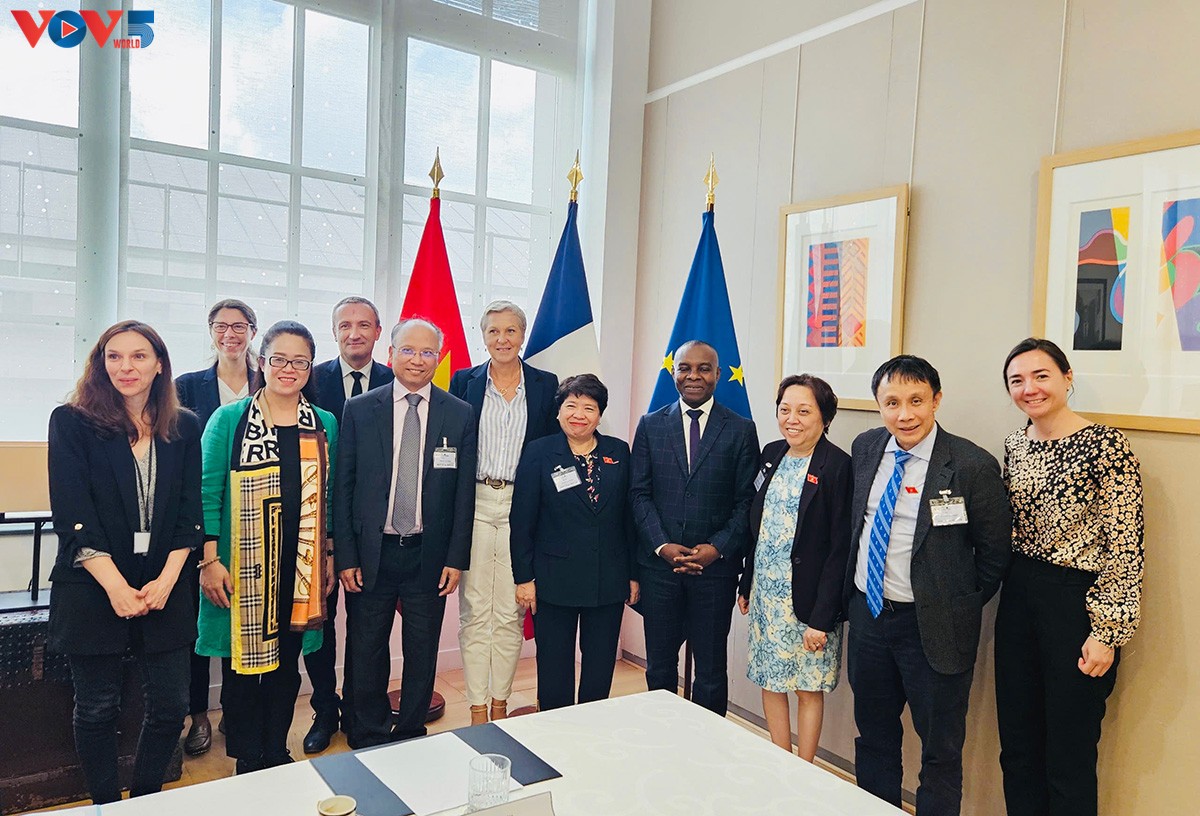 Tại các cuộc làm việc, các đối tác Pháp, trong đó có Bà Anne Le Hénaff, Chủ tịch Nhóm hữu nghị Pháp – Việt Nam tại Quốc hội Pháp và ông Alain Cadec, Chủ tịch Nhóm hữu nghị Pháp – Việt Nam tại Thượng viện Pháp, khẳng định luôn quan tâm thúc đẩy quan hệ giữa hai nước và giữa hai cơ quan lập pháp, tích cực triển khai các biện pháp ủng hộ Việt Nam, như: xem xét thông qua Dự luật phê chuẩn Hiệp định bảo hộ đầu tư Việt Nam – EU; thúc đẩy EU sớm gỡ bỏ thẻ vàng IUU cho Việt Nam; tăng cường trao đổi trong các lĩnh vực hợp tác về y tế, môi trường, lao động việc làm.