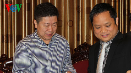 | Ông Vũ Minh Tuấn, Phó Tổng Giám đốc Đài TNVN tiếp ông Gia Bồi Chương. |
