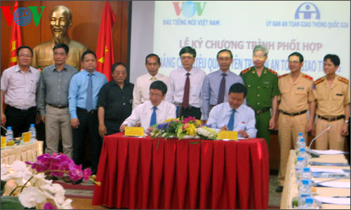(VOV5) - Chiều 21/5, tại Trung tâm Phát thanh Quốc gia 58 Quán Sứ, Hà Nội, Đài Tiếng nói Việt Nam tổ chức Lễ ký kết Chương trình phối hợp nâng cao hiệu quả tuyên truyền an toàn giao thông với Ủy ban An toàn giao thông Quốc gia.