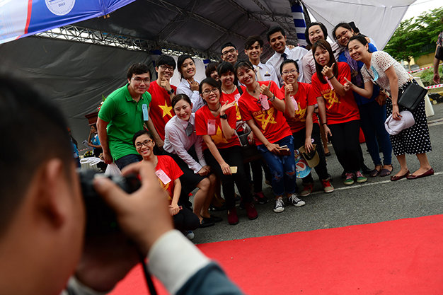 | Các đại biểu chụp ảnh kỷ niệm cùng các tình nguyện viên Việt Nam. Ảnh: tuoitre. |