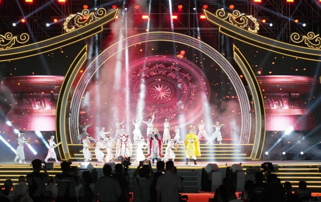 Biểu diễn nghệ thuật tại Lễ khai mạc Hội Xuân núi Bà Đen năm 2024 - Ảnh: Minh Phú/TTXVN |