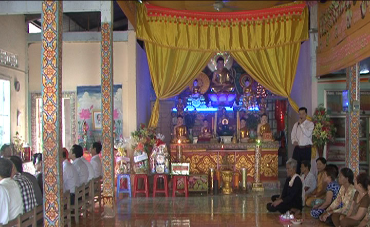 (VOV5) - Ngày 04/10, đoàn đại biểu Thành ủy, Hội đồng nhân dân, Ủy ban nhân dân, Ủy ban Mặt trận Tổ quốc Việt Nam thành phố Cần Thơ đến thăm, chúc mừng các vị thượng toạ, sư sãi, à cha tại chùa Pi Tu Khô Sa Răng Sây (thuộc phường An Cư, quận Ninh Kiều, Cần Thơ nhân dịp lễ Sen Đolta cổ truyền của đồng bào Khmer. Đoàn ân cần thăm hỏi sức khỏe và gửi lời chúc mừng tới các vị thượng tọa, sư sãi và toàn thể đồng bào dân tộc Khmer trên địa bàn thành phố Cần Thơ.