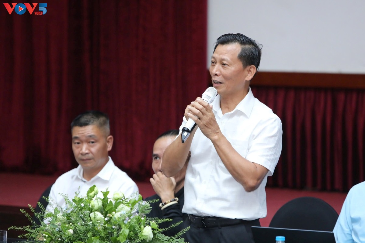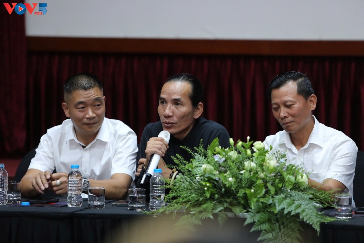 Tác giả kịch bản Hà Văn Thắng, Nguyên Giám đốc Sở Du lịch tỉnh Lào Cai chia sẻ tại buổi họp báo. Ảnh: Thế Hùng/VOV5 |