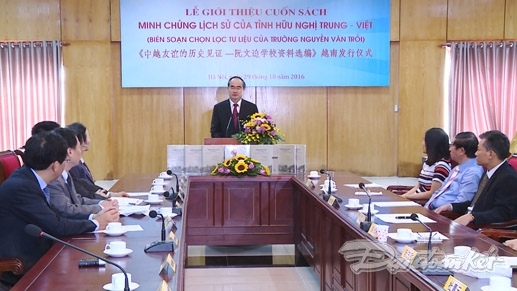 Sáng 29/10, tại Hà Nội, Hội hữu nghị Việt Nam - Trung Quốc phối hợp với Trường Văn hóa Quân đội - Thiếu sinh quân Nguyễn Văn Trỗi (Tổng cục Chính trị, Quân đội nhân dân Việt Nam) tổ chức lễ ra mắt cuốn sách "Minh chứng tình hữu nghị Trung - Việt”.