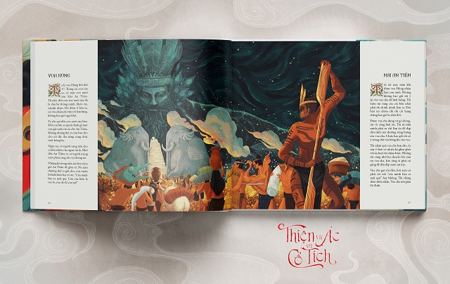 Với thế mạnh là đơn vị tiên phong trong việc đầu tư thực hiện dòng sách artbook, Thiện và Ác và Cổ tích của Nhà xuất bản Kim Đồng có sự khác biệt so với các ấn phẩm văn học dân gian đã từng có mặt trên thị trường sách. Các truyện cổ hòa quyện cùng những bức tranh khổ lớn của các họa sĩ trẻ đương đại như một bộ sưu tập tranh ấn tượng. 16 họa sĩ là 16 phong cách biểu đạt khác nhau, tạo nên sự cộng hưởng đặc biệt, mang đến hiệu quả tiếp nhận mới cho toàn bộ ấn phẩm.