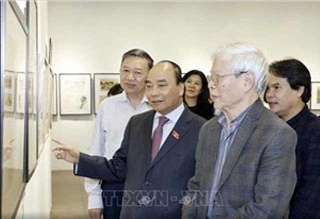 Ngày 06/11, Thủ tướng Nguyễn Xuân Phúc tới thăm triển lãm tranh ký "Nét thời gian" của NSND, Phó Giáo sư, Tiến sỹ, Họa sỹ Ngô Mạnh Lân, tại Trường ĐH Mỹ thuật Việt Nam.