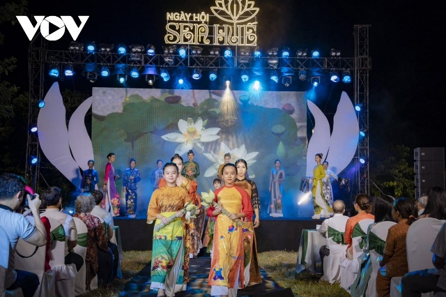 Trình diễn Áo dài lấy cảm hứng từ sen. Ảnh: VIOV |