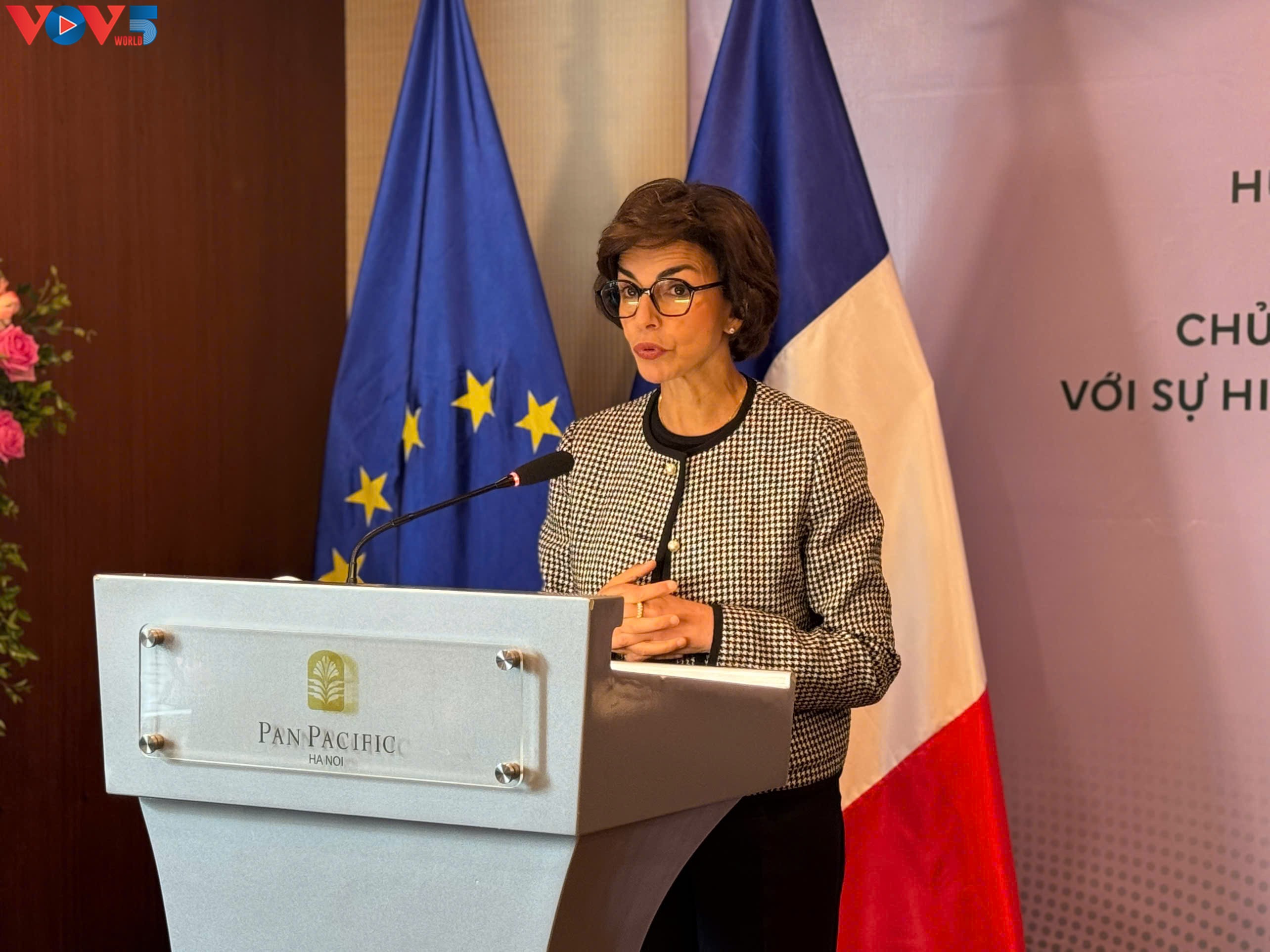 Bà Rachida Dati, Bộ trưởng Văn hoá Pháp phát biểu tại buổi lễ. Ảnh: Lê Huy |