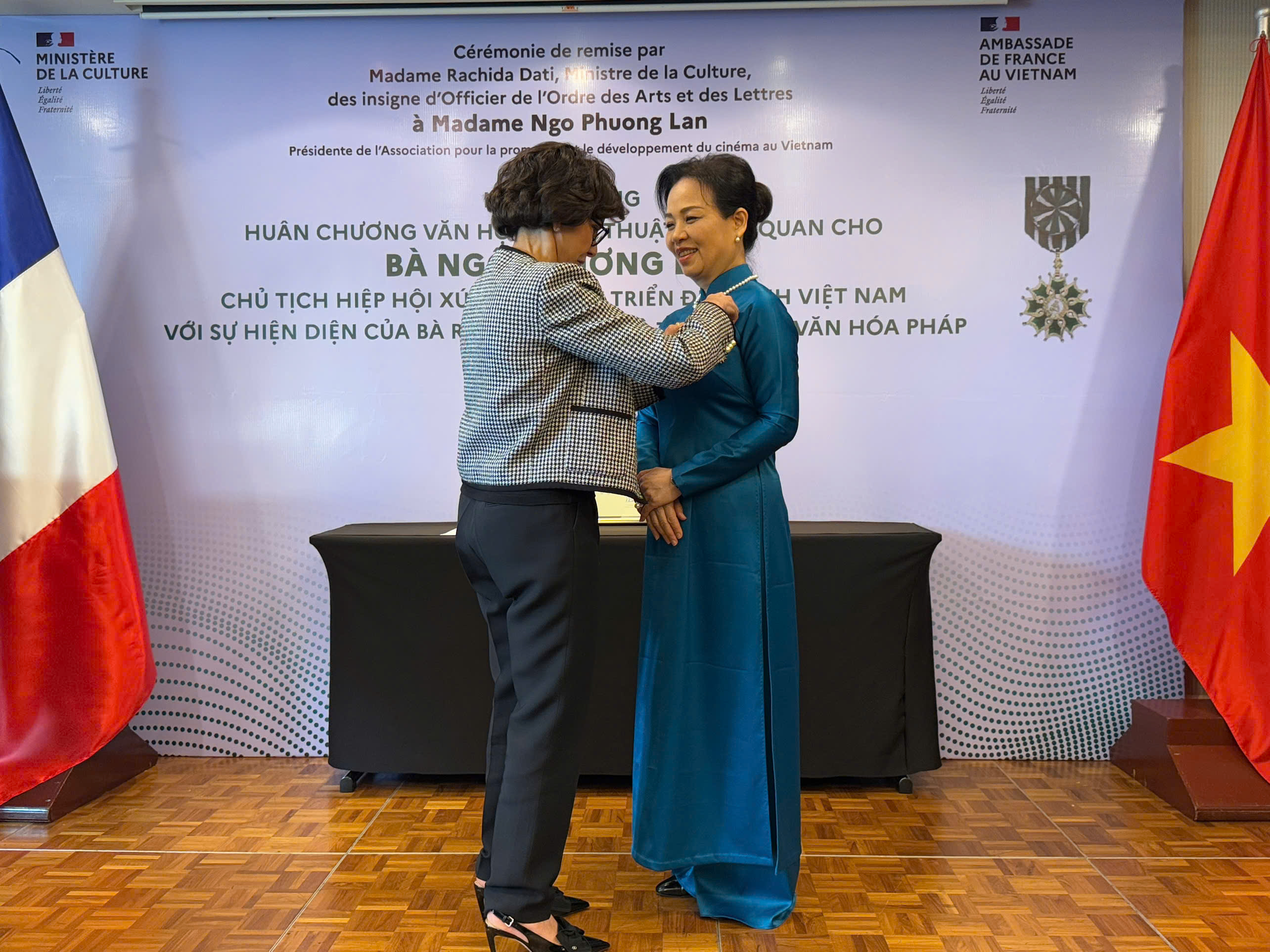 Bà Rachida Dati, Bộ trưởng Văn hoá Pháp khẳng định, việc trao tặng huân chương lần này là sự ghi nhận không chỉ đối với cá nhân bà Ngô Phương Lan, mà còn thể hiện sự trân trọng đối với ngành điện ảnh Việt Nam trong tiến trình phát triển.