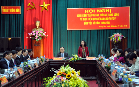 | Toàn cảnh buổi làm việc của trưởng ban dân vận trung ương Trương Thị Mai tại Hưng Yên. Ảnh: baohungyen |