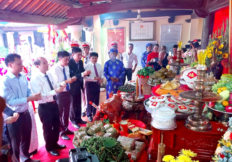 Lãnh đạo và nhân dân địa phương thành kính dâng hương, bái vọng Quốc Tổ Hùng Vương.jpg |