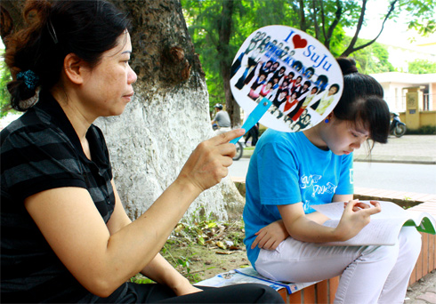 | Quen nhau trong lúc chờ con, hai người mẹ ở Quốc Oai và Thái Bình nhanh chóng trở nên thân thiết. Họ cùng nhau đi mua đồ ăn trưa, cùng quạt cho hai sĩ tử ngủ và bàn đến chuyện tương lai khi con mình đậu đại học. |