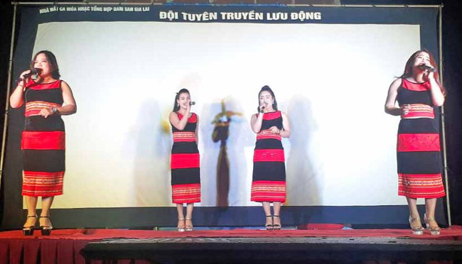 Một tiết mục biểu diễn của Nhà hát Ca múa Nhạc tổng hợp Đam San tại cơ sở. Hầu hết Nghệ sĩ Nhân dân, Nghệ sĩ Ưu tú trên địa bàn tỉnh đều trưởng thành từ đơn vị này. Ảnh: baogialai.com.vn |
