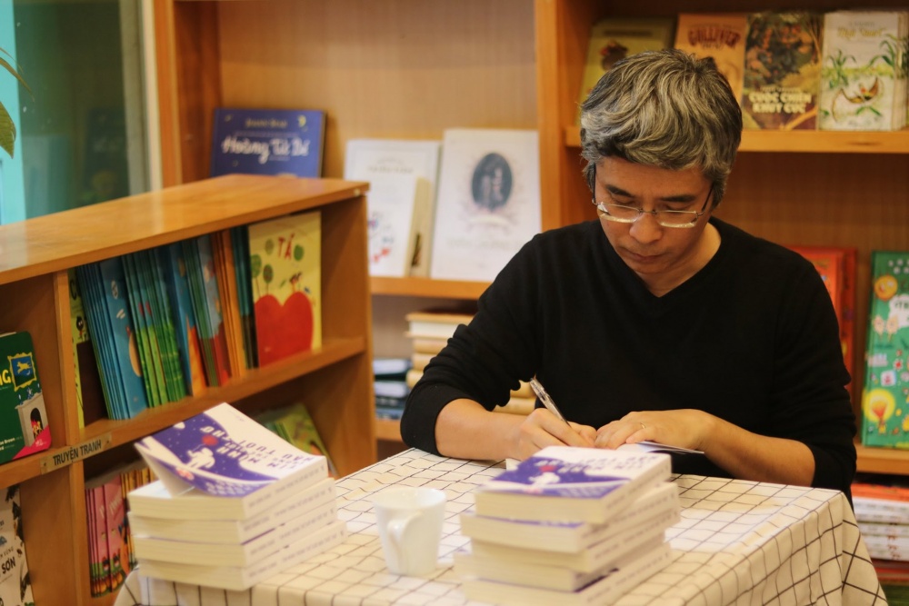 Tiến sĩ Đặng Hoàng Giang ký tặng sách cho độc giả - Ảnh: Báo Lao động thủ đô. |