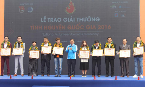 | Các tập thể được nhận giải thưởng Tình nguyện quốc gia 2016. Ảnh: qdnd |