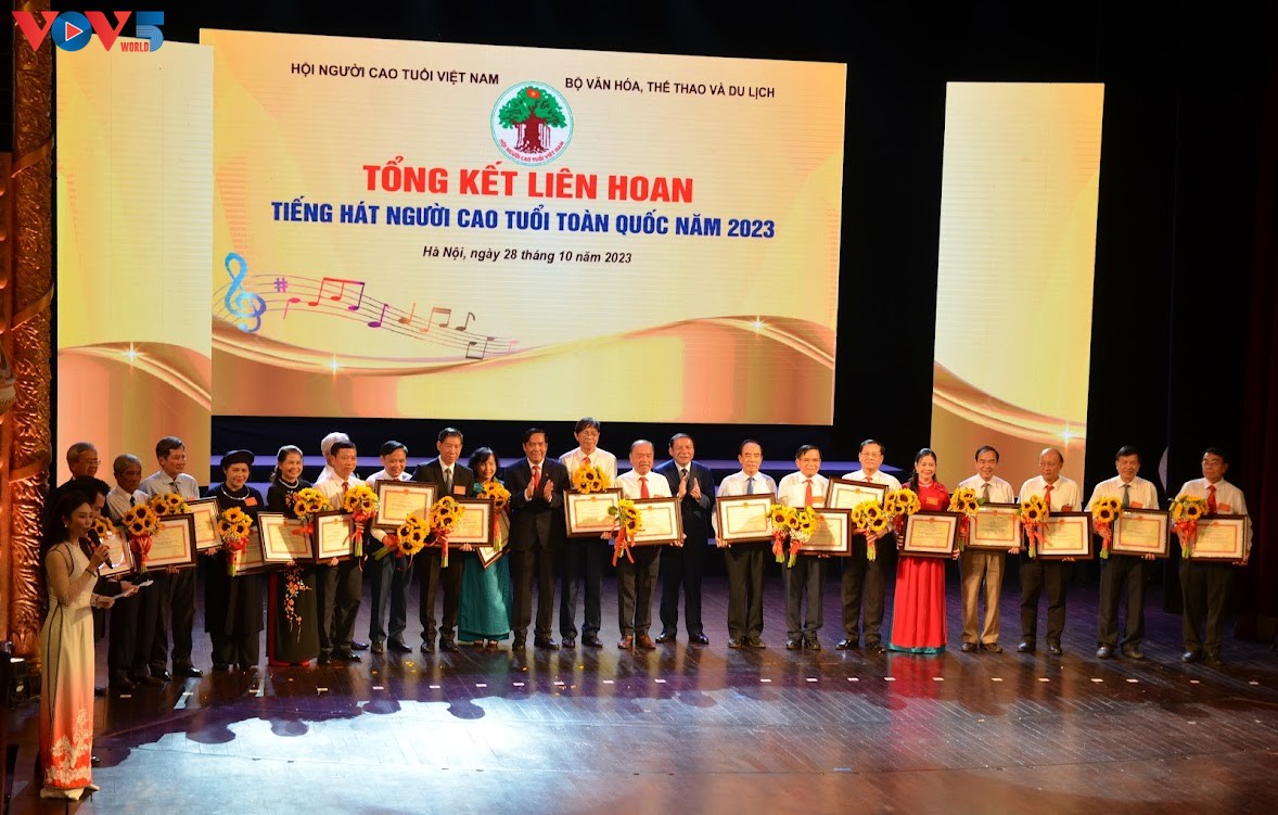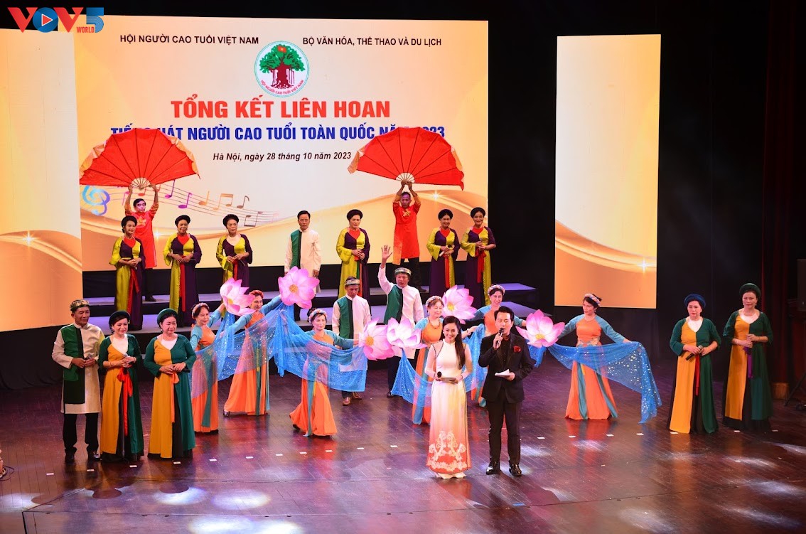 Sau 2 ngày hội diễn sôi nổi, lễ bế mạc và vinh danh các cá nhân, tập thể xuất sắc Liên hoan tiếng hát người cao tuổi toàn quốc năm 2023 diễn ra tối 28/10 tại Nhà hát Lớn Hà Nội.