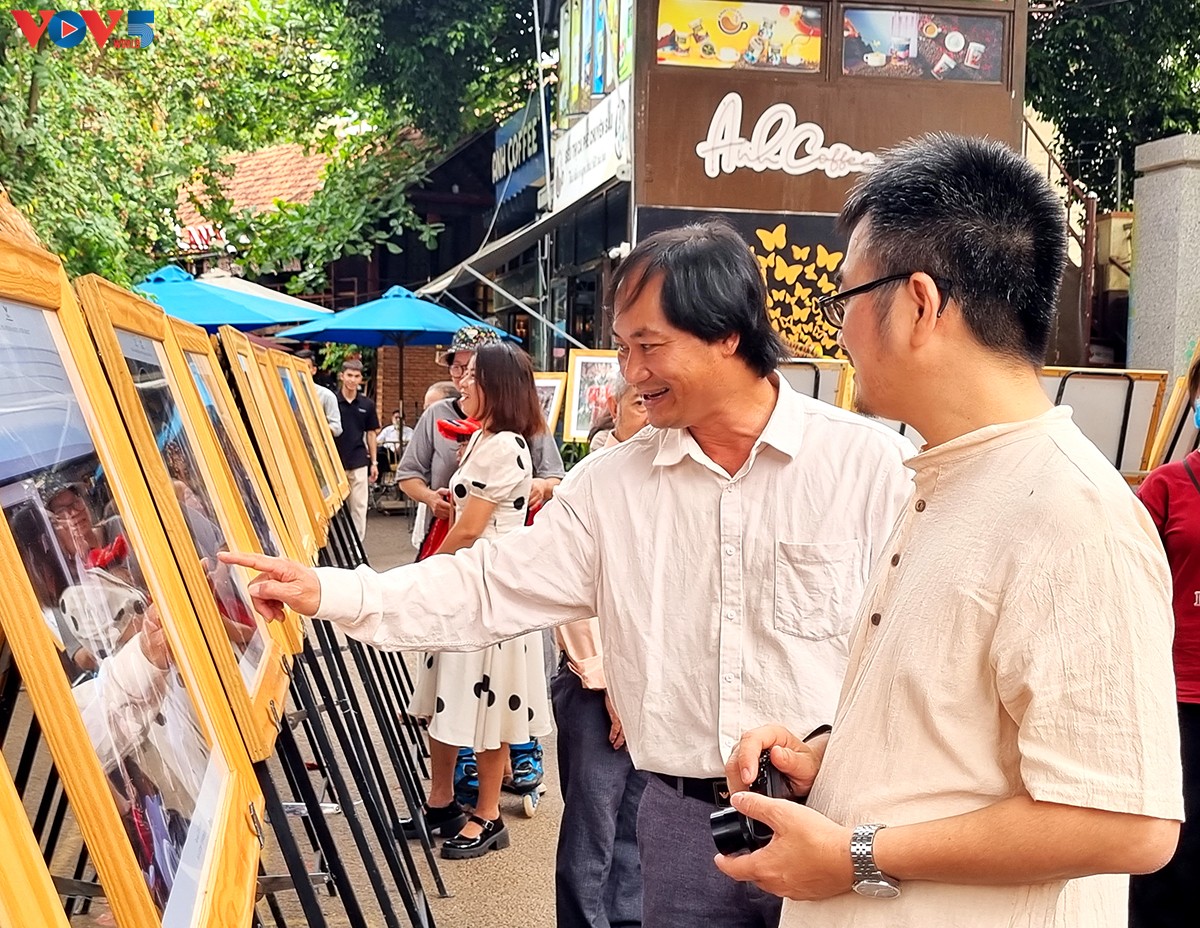 Các tác phẩm xuất sắc được trưng bày triển lãm tại đường sách cà phê Buôn Ma Thuột. Ảnh: VOV |
