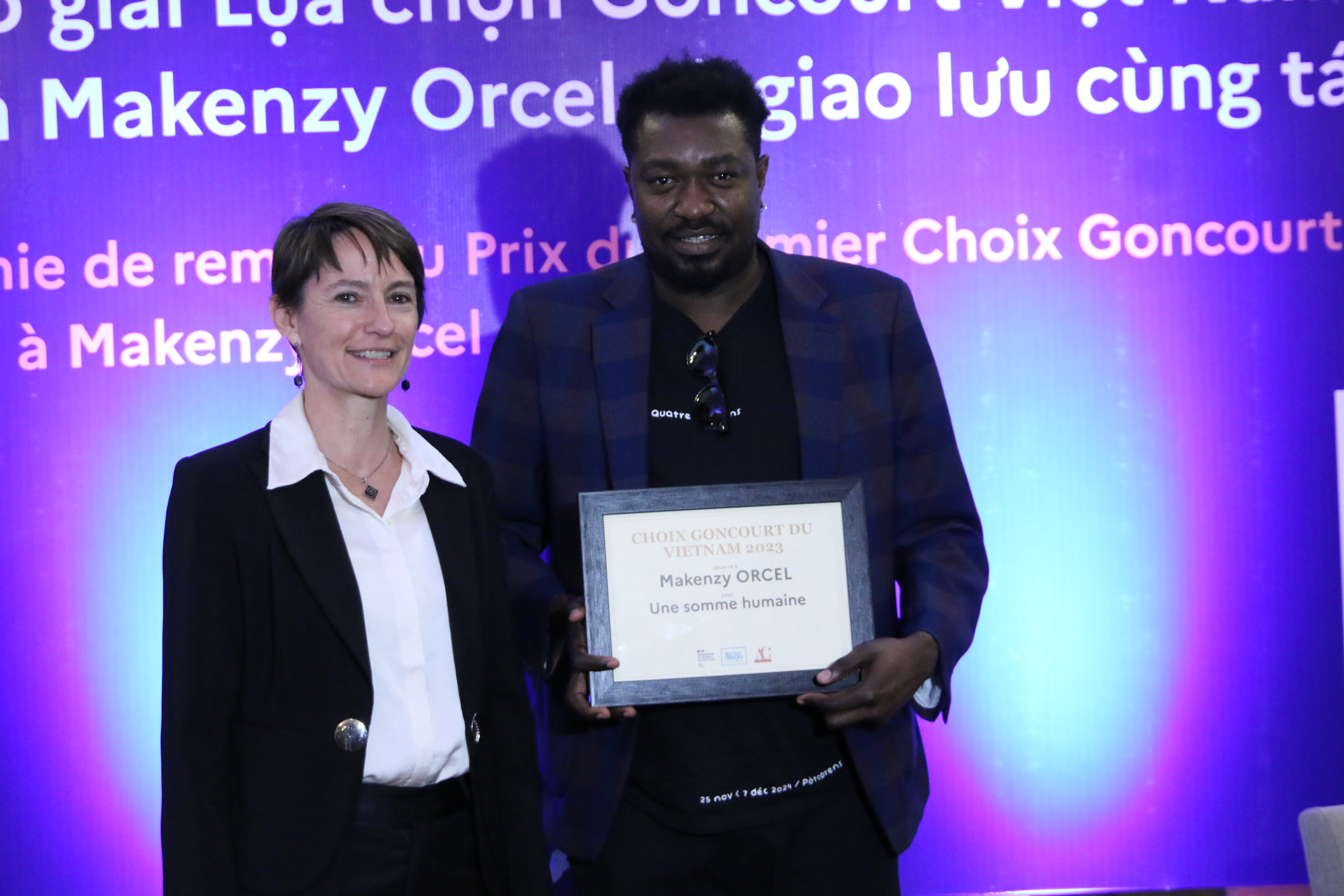 Bà Cécile Vigneau, Đại biện Đại sứ quán Pháp, cho biết: "Dựa theo danh sách bốn tác phẩm đã được Viện Hàn lâm Goncourt lựa chọn, khoảng 20 sinh viên khoa Pháp từ 4 trường đại học tại Hà Nội, Đà Nẵng và TP. Hồ Chí Minh đã bình chọn tác phẩm ‘Une somme humaine’ (Tạm dịch : Một tóm tắt đời người) của nhà văn Makenzy Orcel cho giải "Lựa chọn Goncour".