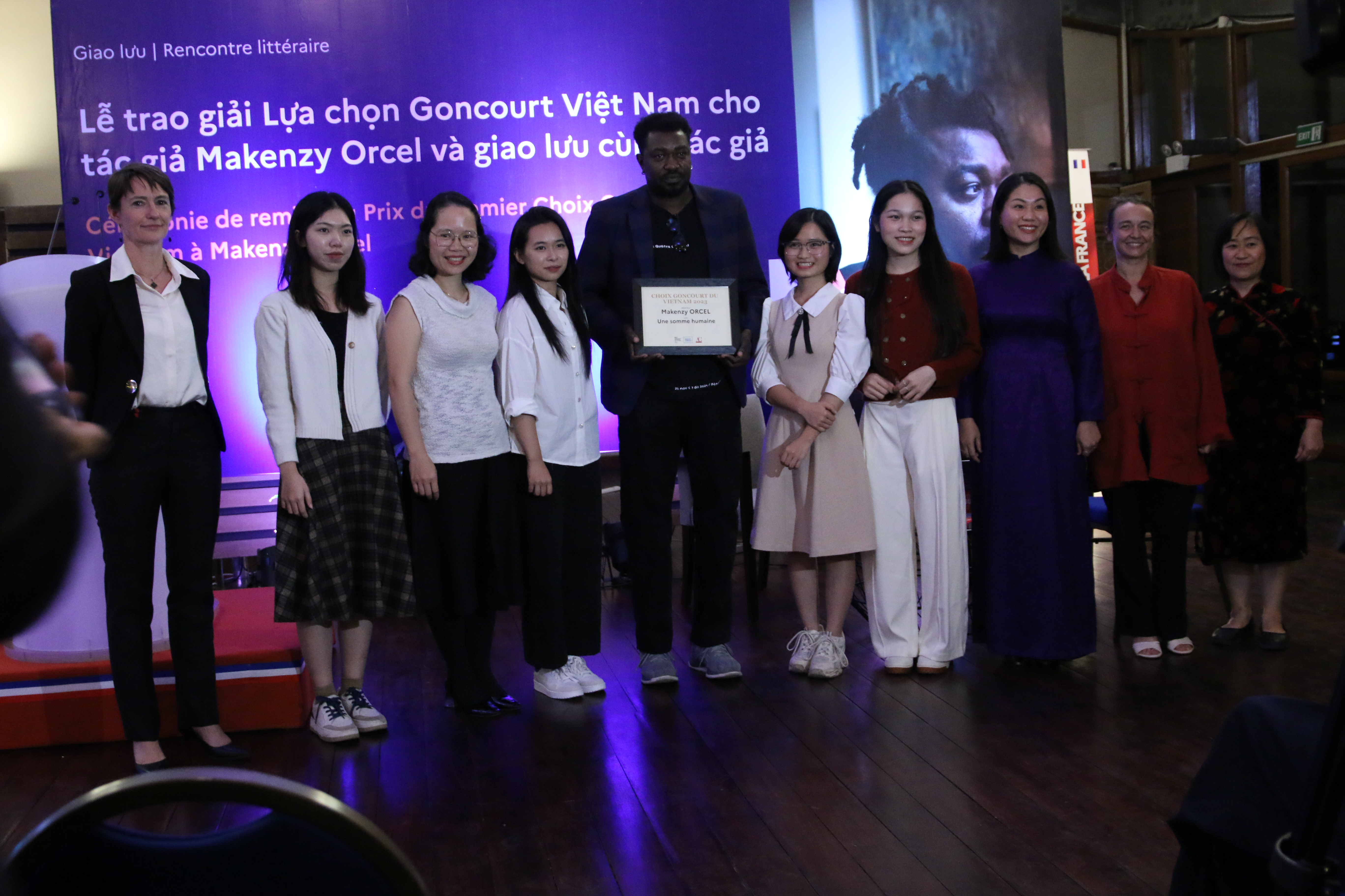 Sau lễ trao giải, nhà văn Makenzy Orcel đã tham gia giao lưu với các sinh viên Pháp ngữ tại Hà Nội.