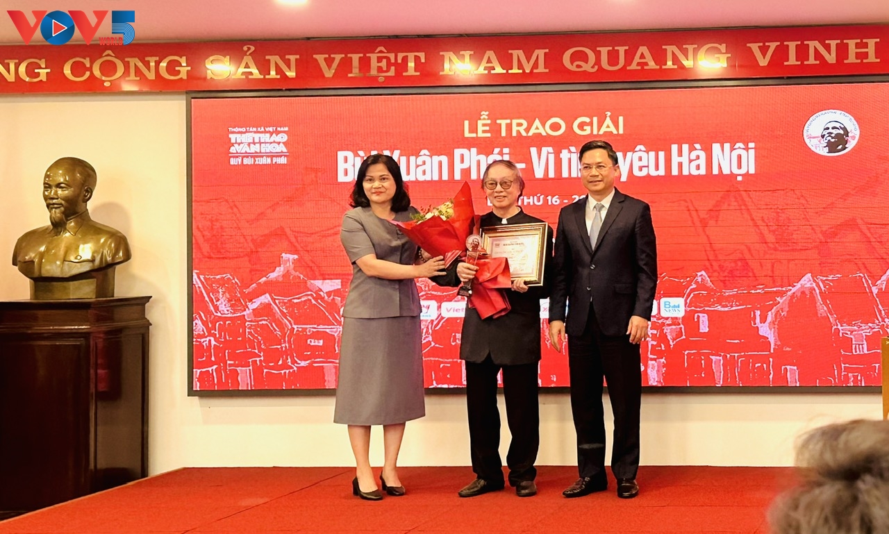 NSND, đạo diễn Đặng Nhật Minh (đứng giữa) nhận Giải thưởng Lớn - Vì tình yêu Hà Nội lần thứ 16.