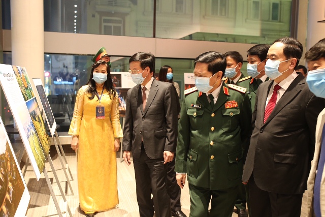 Các đại biểu thăm gian trưng bày tác phẩm dự thi. - Ảnh: VGP/Nhật Bắc |