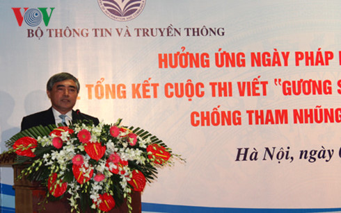 Cuộc thi viết “Gương sáng trong đấu tranh phòng, chống tham nhũng” trên báo chí do Bộ Thông tin và Truyền thông phối hợp với Bộ Tư pháp tổ chức từ tháng 12/2015. Ngày 7/11, tại Hà Nội, Ban tổ chức tổng kết cuộc thi. Ban Giám khảo lựa chọn 24 tác phẩm để trao giải gồm: 1 giải Nhất, 2 giải Nhì, 3 giải Ba, 15 giải Khuyến khích và 3 giải phụ. Trong đó, tác phẩm “Những người hùng chống tiêu cực, tham nhũng” của tác giả Đào Văn Bảy - Báo Công an Thành phố Hồ Chí Minh đã giành giải Nhất.