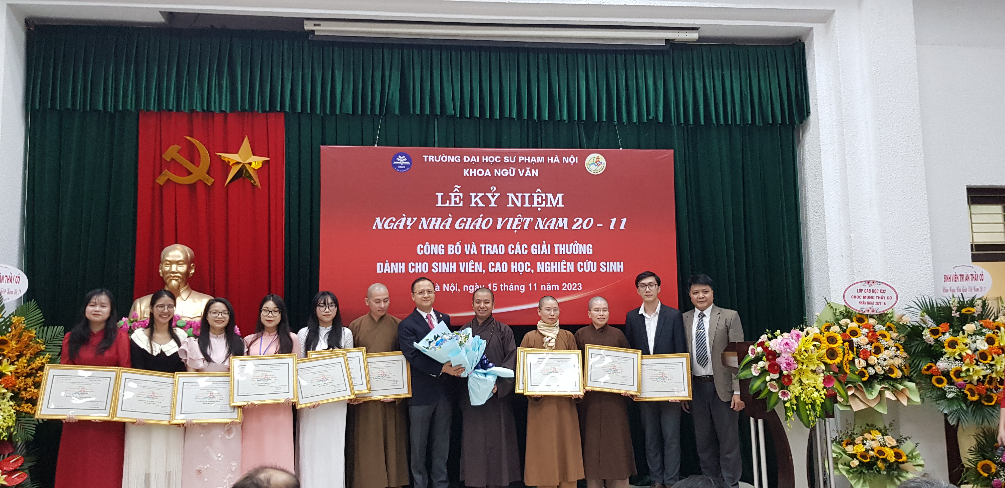 Tại buổi lễ, Ban tổ chức trao tặng giải thưởng cho 13 học viên cao học và sinh viên đại học với các đề tài luận văn, đề tài khóa luận chuyên ngành Hán Nôm được bảo vệ thành công và đạt điểm cao. Ngành Hán Nôm là một ngành học liên quan đến nghiên cứu và giảng dạy về văn học, lịch sử, ngôn ngữ, văn hóa dân tộc Việt Nam thông qua các tư liệu Hán Nôm. Hán Nôm là hệ thống chữ viết của Việt Nam trước khi bộ chữ Quốc Ngữ được sử dụng và đây là hệ thống chữ viết duy nhất của Việt Nam trong suốt hơn 1.000 năm. Từ Hán Nôm được sử dụng để viết các tác phẩm văn học, tôn giáo, luật pháp, lịch sử, y học, kinh tế và các văn bản khác.