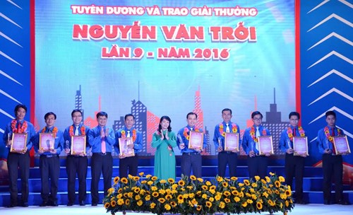 (VOV5) - Kỷ niệm 34 năm Ngày truyền thống thanh niên công nhân thành phố (15/10/1982-15/10/2016), tối 16/10, Thành đoàn Thành phố Hồ Chí Minh tuyên dương và trao giải thưởng Nguyễn Văn Trỗi lần thứ 9 cho 36 thanh niên công nhân tiêu biểu.