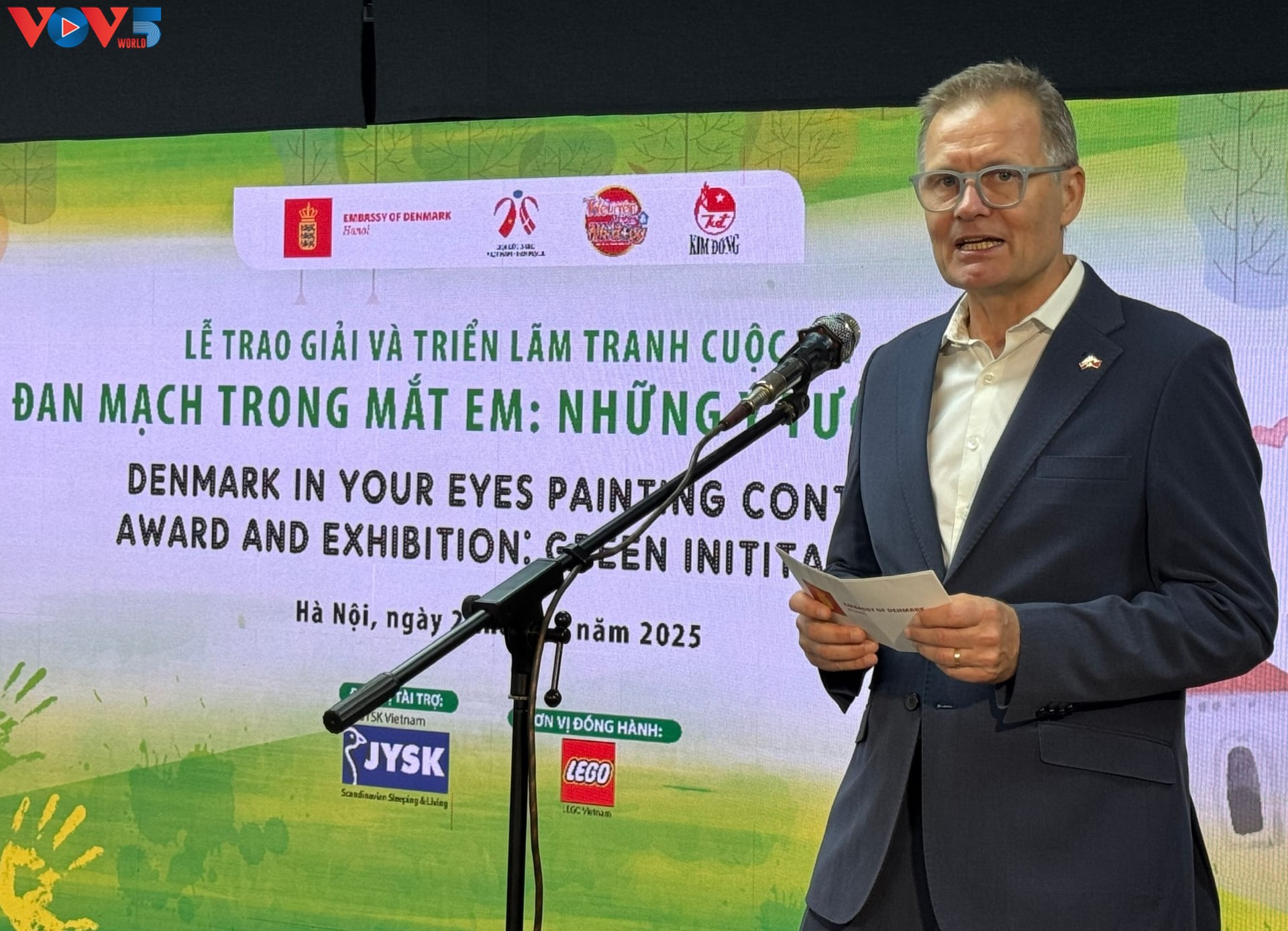 Ông Nicolai Prytz - Đại sứ Đặc mệnh Toàn quyền Đan Mạch tại Việt Nam phát biểu khai mạc tại Lễ trao giải và triển lãm tranh cuộc thi Đan Mạch trong mắt em. |