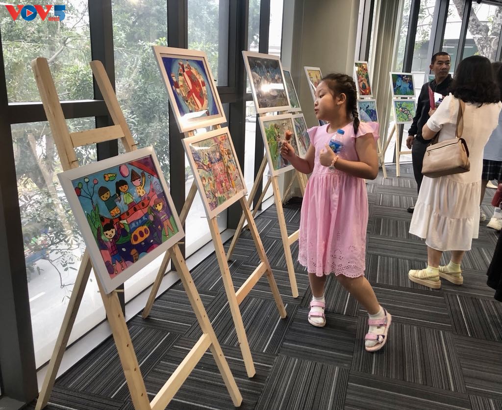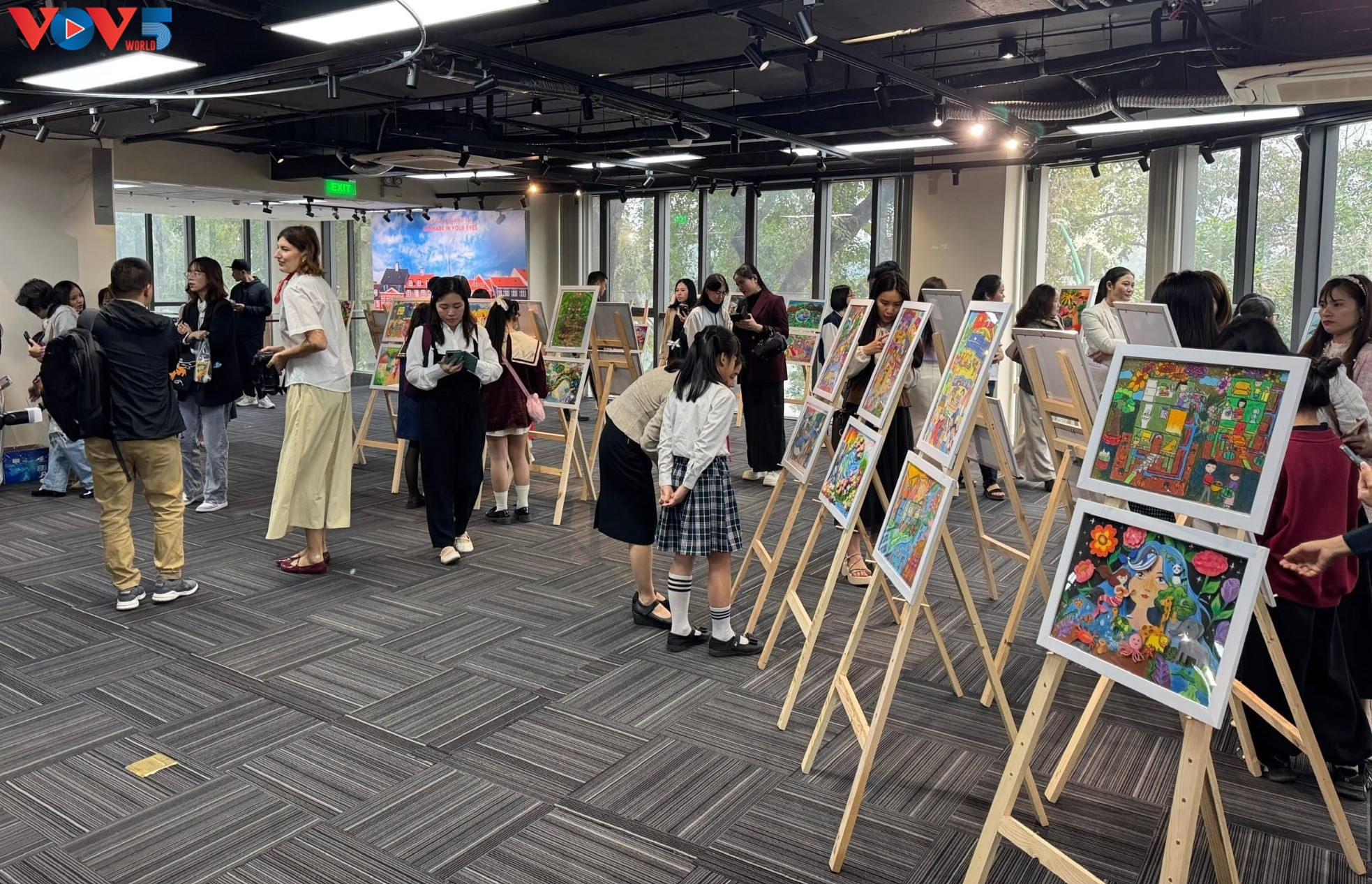 Một góc Triển lãm tranh tham dự Cuộc thi Đan Mạch trong mắt em - Ảnh: Lê Huy |
