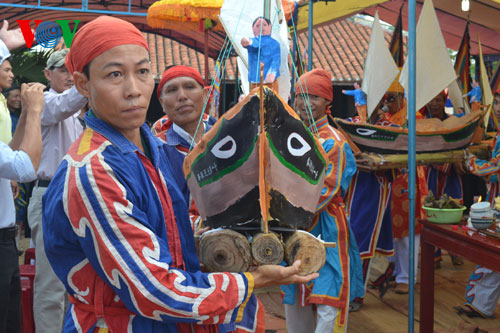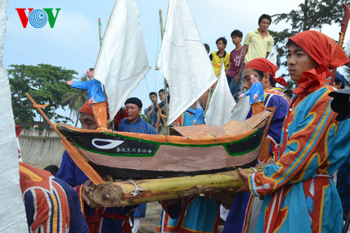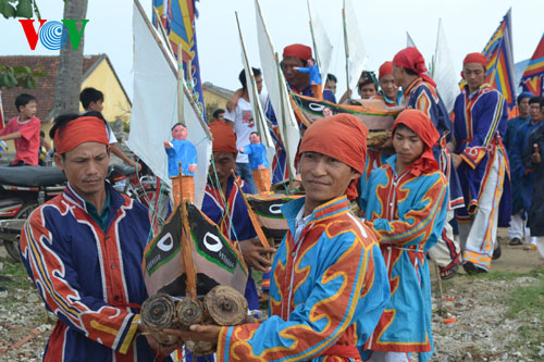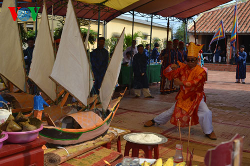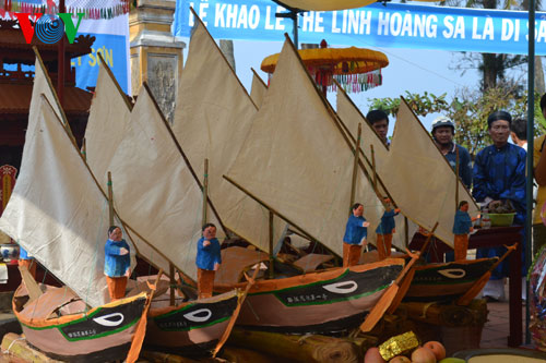 Lễ khao lề thế lính Hoàng Sa năm nay đã phục dựng lại 5 mô hình thuyền câu cùng các vật dụng và 30 bài vị ghi tên tuổi, từng chức danh của những người đi lính Hoàng Sa năm xưa.