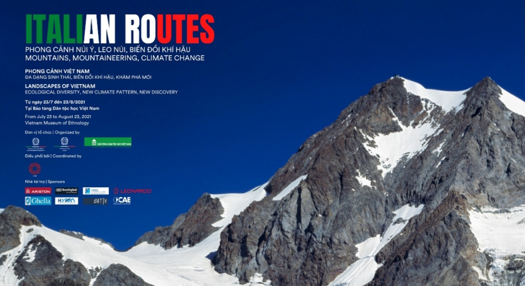 Đại sứ quán Italia tại Việt Nam giới thiệu triển lãm ảnh “ ITALIAN ROUTES – Phong cảnh núi Italia leo núi, biến đổi khí hậu” được tổ chức tại Bảo tàng Dân tộc học Việt Nam (Hà Nội) từ ngày 23/7 đến 23/8/2021.