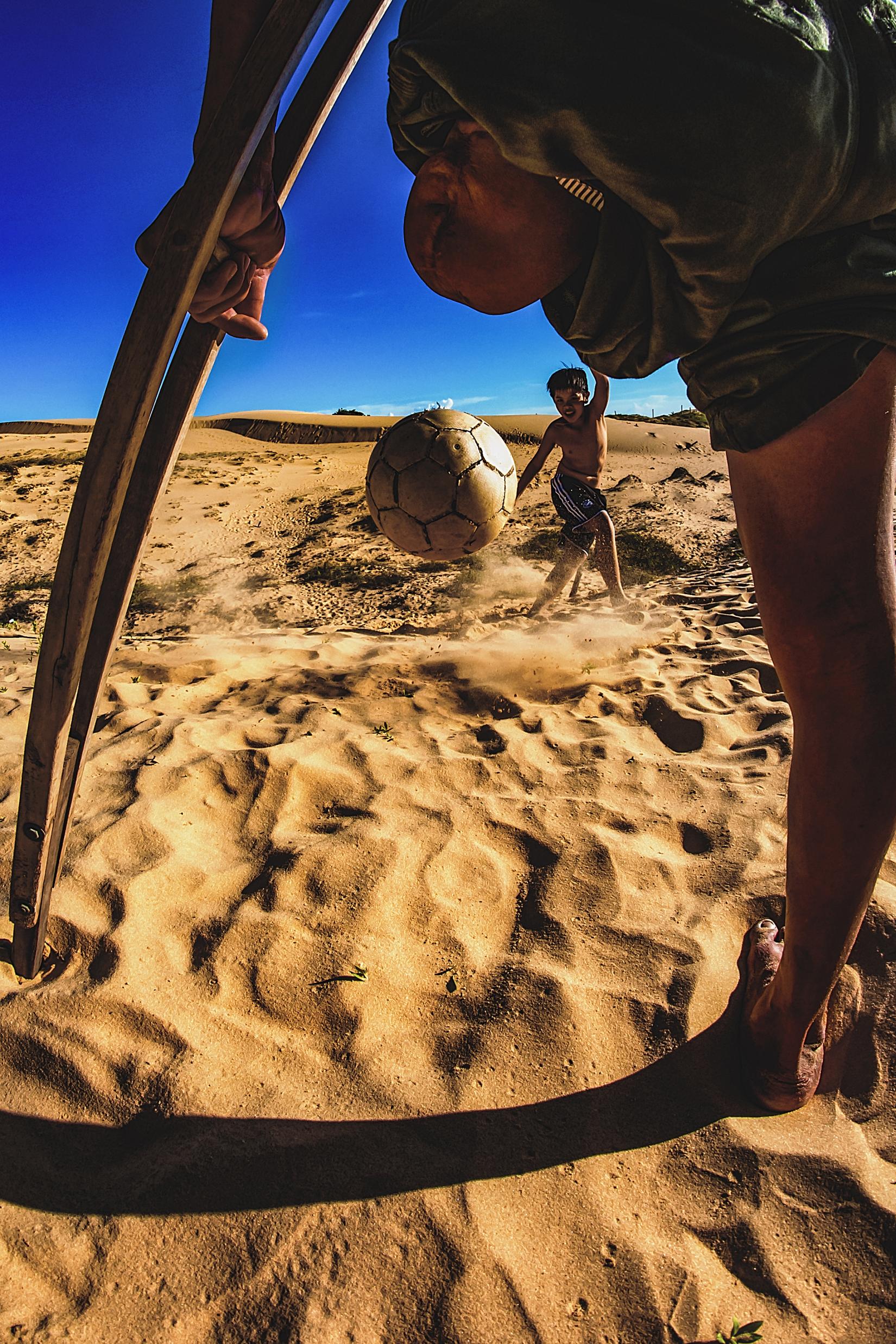Bức ảnh: Nối tiếp ước mơ của tác giả Nguyễn Thanh Cường. - Cha làm cầu gôn huấn luyện cho con, cho con nối tiếp ước mơ, mà mình không thực hiện được |