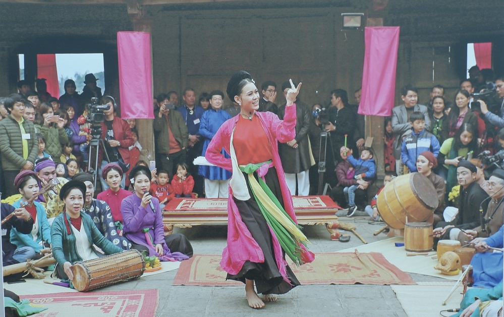 Tác phẩm "Chiếu chèo giữa sân đình" của hội viên Nguyễn Thị Thanh.