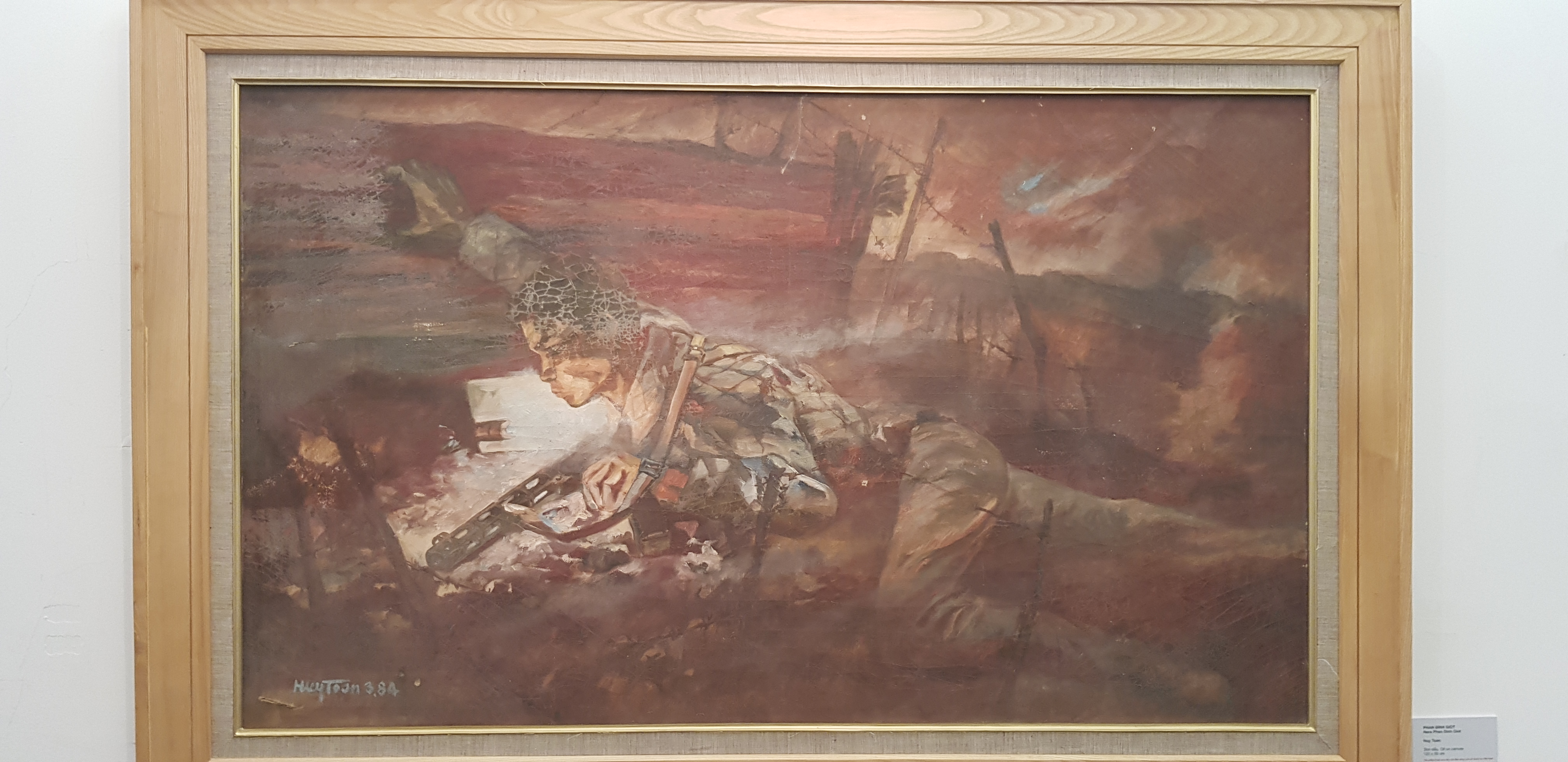 Tác phẩm tranh sơn dầu Anh hùng Phan Đình Giót của tác giả Huy Toàn. Ảnh: Ngọc Anh |