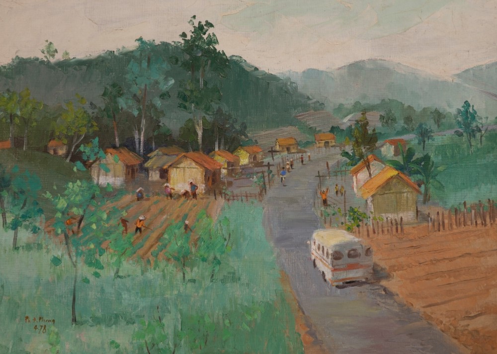 Tác phẩm hội họa bằng sơn dầu “Làng Hà Nội trên vùng kinh tế Lâm Đồng” của Phạm Đức Phong. Ảnh: Bảo tàng Mỹ thuật Việt Nam cung cấp |