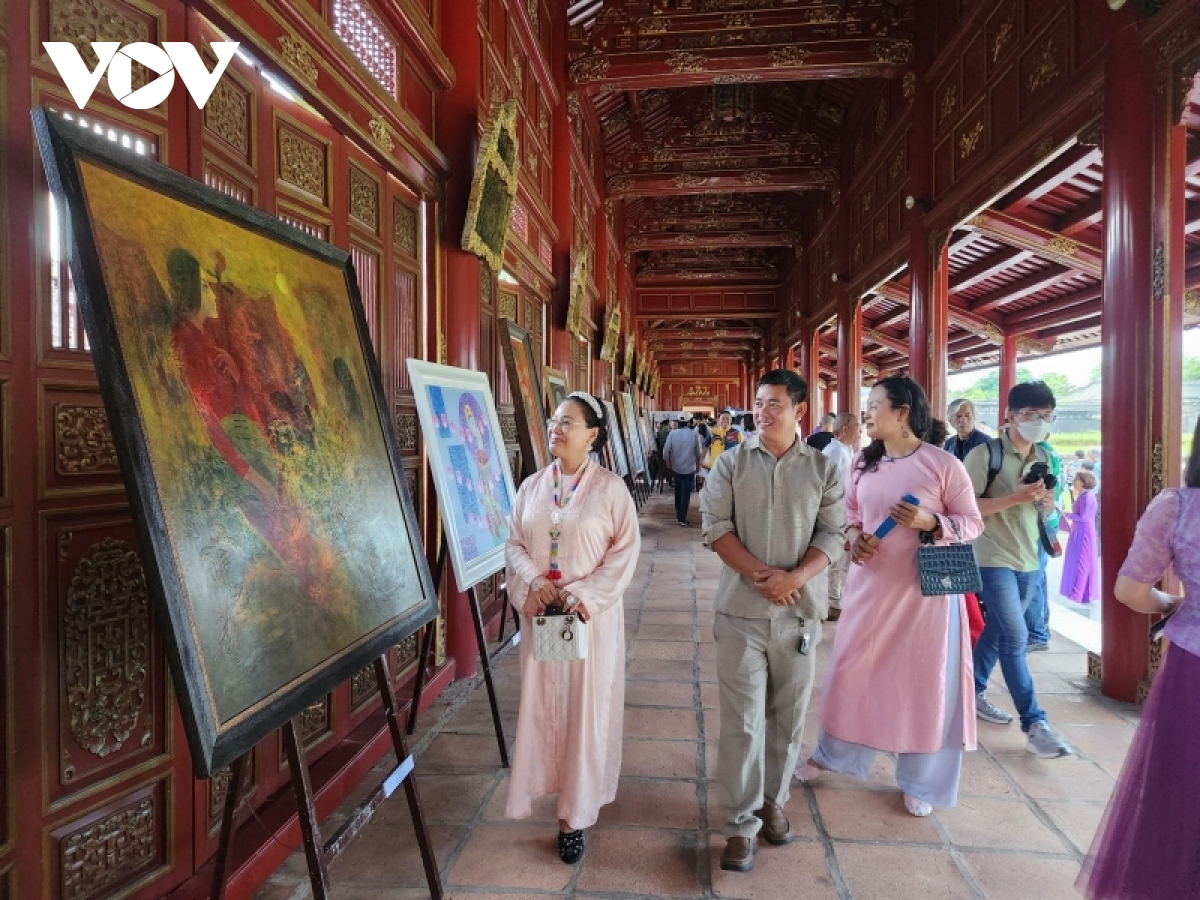 Chiều qua, tại Trường lang Tử Cấm Thành, Đại Nội Huế, Trung tâm Bảo tồn di tích Cố đô Huế khai mạc triển lãm “Diễn xướng cung đình Huế qua tác phẩm mỹ thuật”.