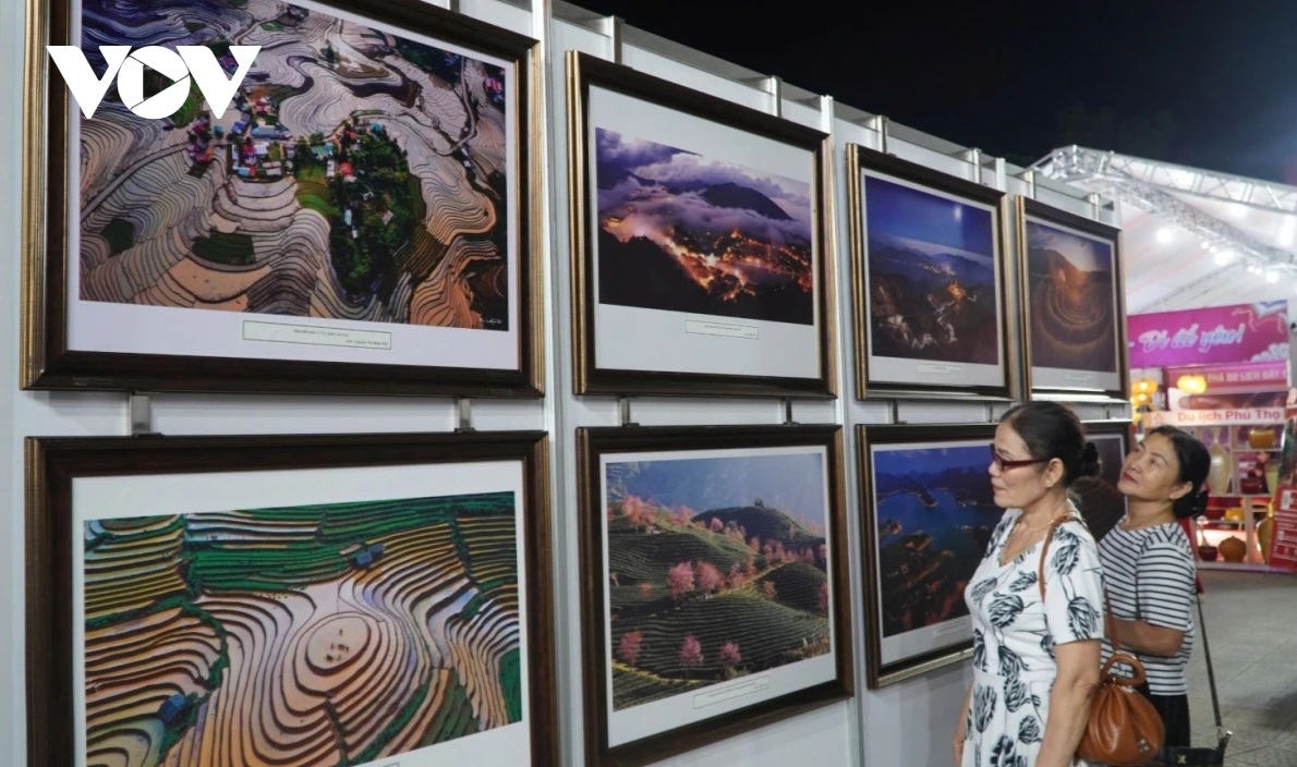 Triển lãm giới thiệu hơn 300 bức ảnh và hiện vật, giới thiệu các di sản văn hóa vật thể, phi vật thể của Việt Nam. Ảnh: VOV |