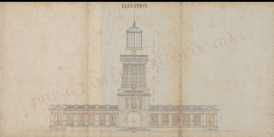 Bản vẽ mặt đứng ngọn hải đăng ở đảo Hòn Dấu năm 1895 |