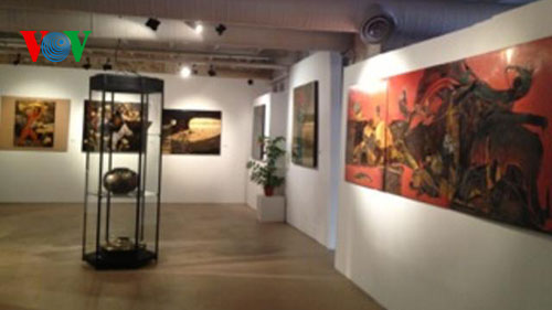 Đại diện Bộ Văn hoá Thể thao và Du lịch, đã giới thiệu với các vị khách đến tham quan triển lãm một số tác phẩm tiêu biểu trong số 40 tranh sơn mài đương đại khổ lớn và hơn 200 hiện vật thủ công đặc sắc của các làng nghề, nhiều dân tộc thiểu số Việt Nam.