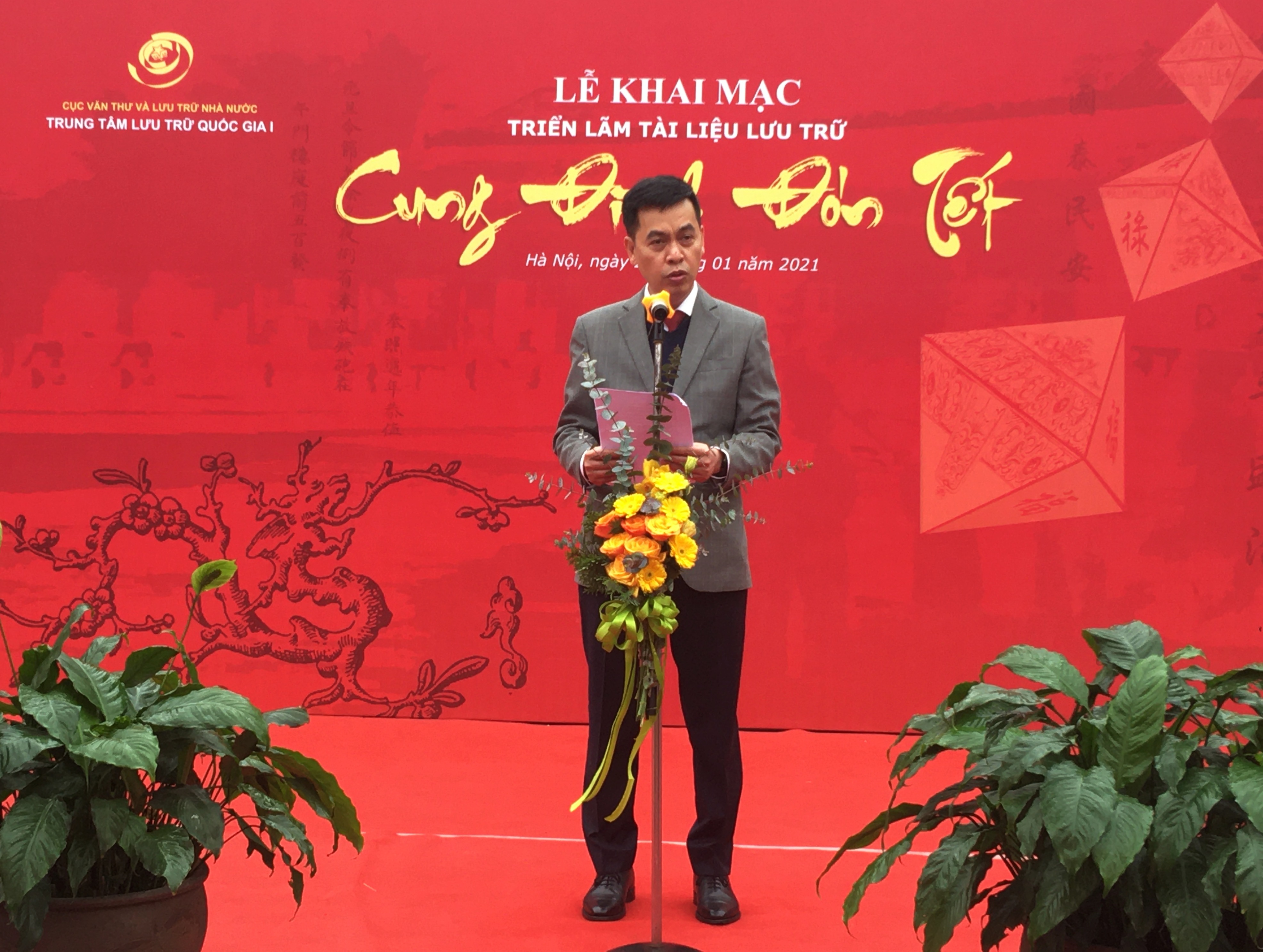 Phát biểu khai mạc, ông Đặng Thanh Tùng, Cục trưởng Cục Văn thư và Lưu trữ Nhà nước cho biết: “Qua tài liệu lưu trữ và các tư liệu hình ảnh minh họa, triển lãm sẽ tái hiện một phần bức tranh Tết cung đình triều Nguyễn đồng thời cho thấy sự gắn kết giữa Tết ở cung đình với Tết trong nhân dân. Ban tổ chức hi vọng, triển lãm sẽ cung cấp thêm thông tin cho công chúng thêm thông tin những nghi lễ đón Tết trong cung đình cũng như trong nhân dân thông qua những tư liệu quý giá để các di sản phát huy giá trị hơn nữa trong đời sống xã hội của chúng ta.”